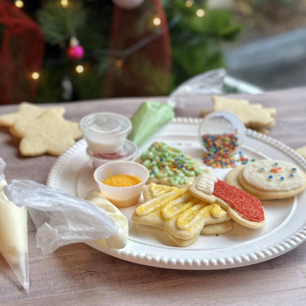 Each kit includes everything you need to make your own Holiday sugar cookies at home: 16 sugar cookies, 3 bags of icing and mixed Holiday sprinkles. Enjoy decorating your own snowmen, stockings, trees and stars with family and friends.