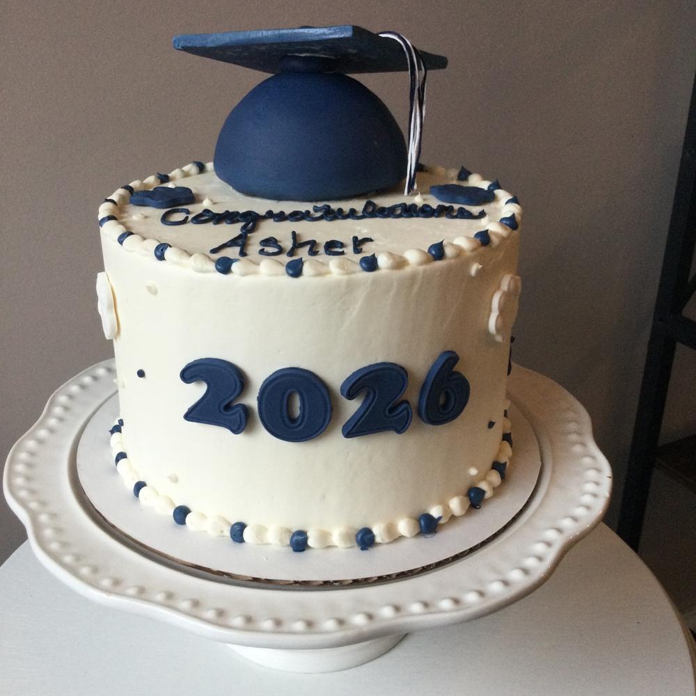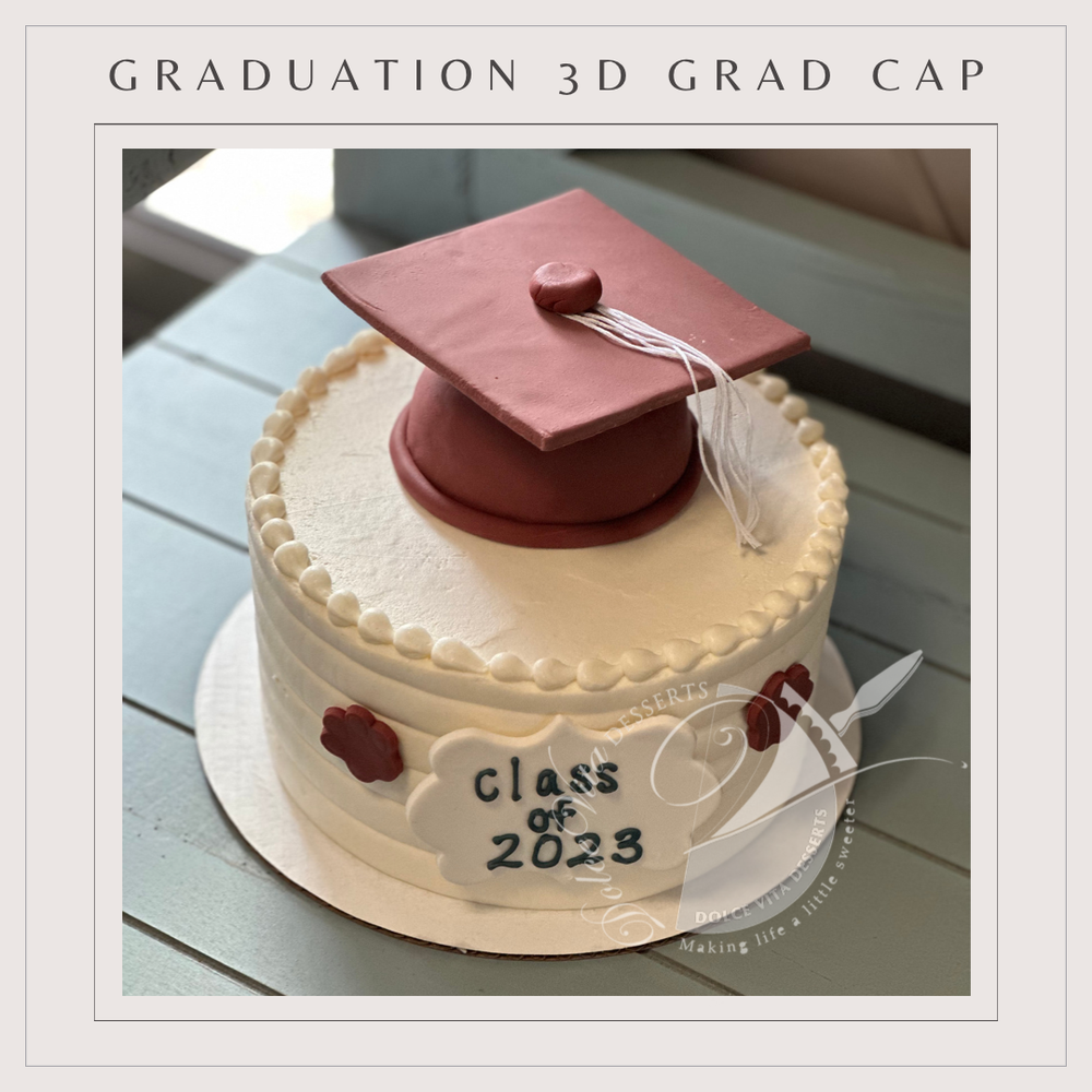 These single tiered cakes have three layers of cake with your choice of filling and include 3D and more elaborate decorations than our classic graduation cakes. All cakes are iced with vanilla buttercream for decorating purposes. These same designs are available as two tiered cakes as well here. Be sure to add cookies or cake pops to complete your celebration!